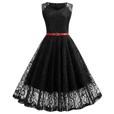 Vous ne pourrez pas résister à cette robe années 60 noir, une pièce typique de la mode des années 60. Grâce à sa ceinture rouge, vous pourrez resserrer la robe à la taille pour sublimer votre silhouette. Vous serez séduite par sa matière en dentelle qui apporte classe et chic à cette robe. Sa couleur noire et sa matière en dentelle feront fondre votre coeur (et celui de votre amoureux).